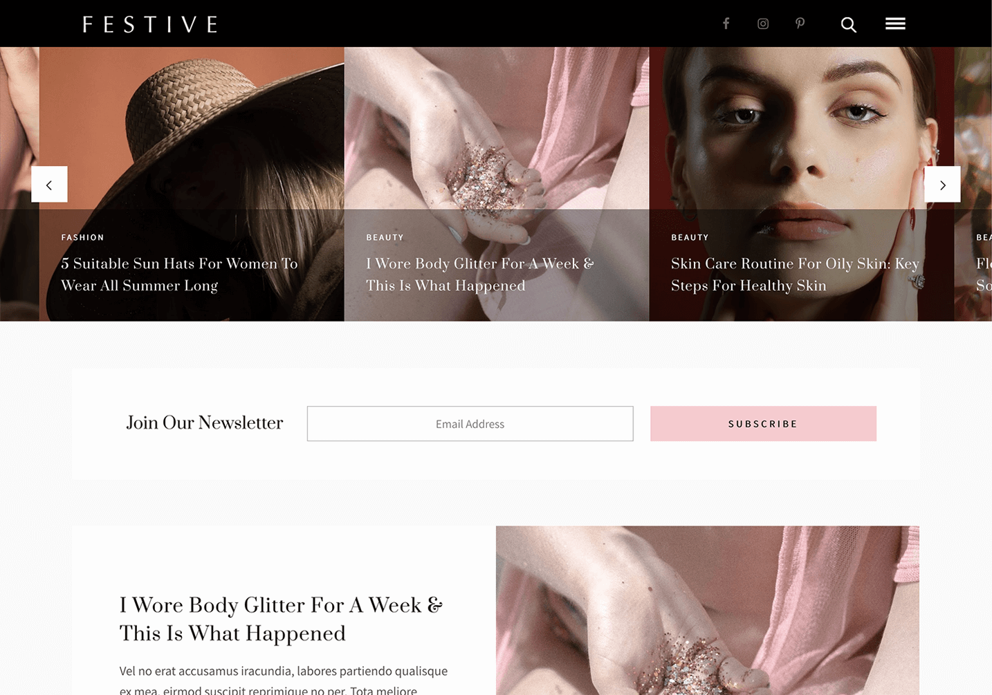 Festive comes with a rich list of Google fonts and unlimited color options. You can set different colors for menu, widgets and for other page elements. With lots of customization options to choose from, you can create your own unique blog that suits your preferences.